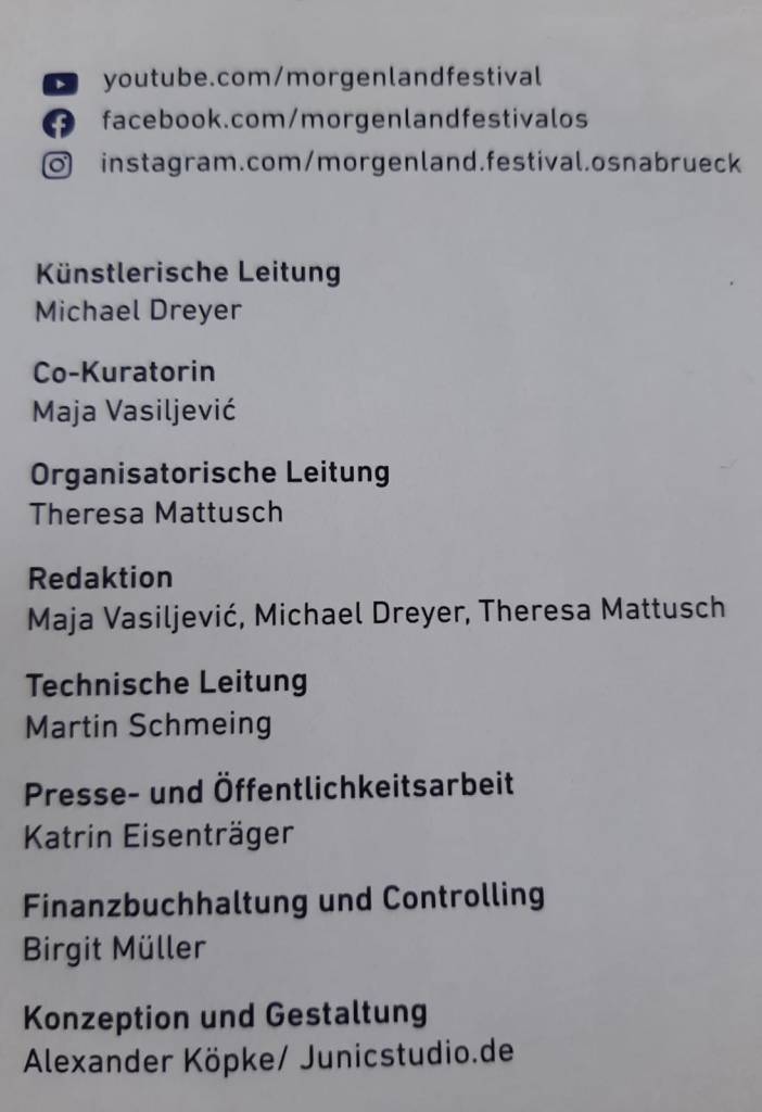 En el año 2020 ha sido co-comisaria del festival de música MORGENLAND FESTIVAL OSNABRÜCK, en Alemania, en su 16ª edición dedicada a los Balcanes: #BalkansBeyondBrass https://www.morgenland-festival.com/home.html