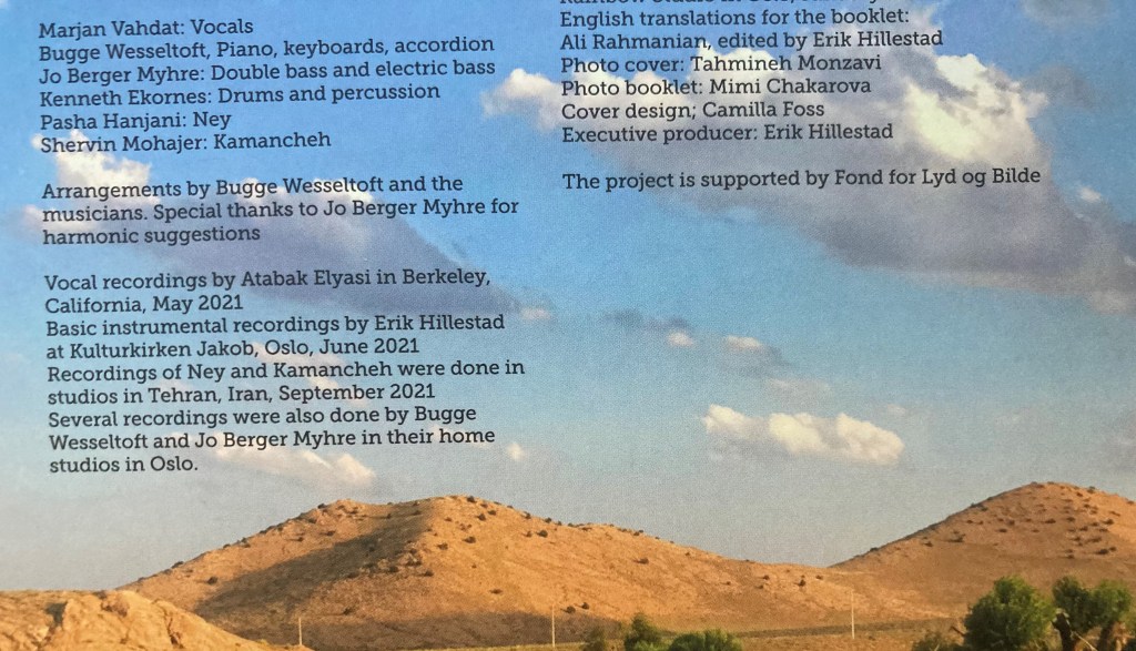 Aparte de Marjan Vahdat, están los extraordinarios músicos iraníes: Pasha Hanjani al ney y Shervin Mohajer: al kamancheh.
