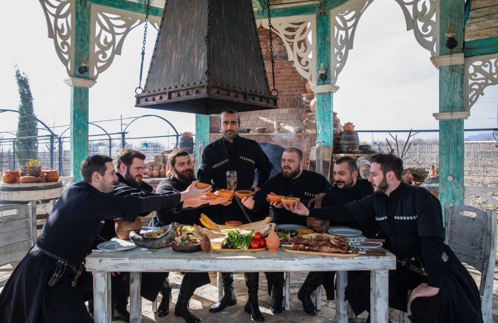 Cuenta la leyenda que, cuando Dios estaba distribuyendo os territorios entre los pueblos de la Tierra, los georgianos estaban demasiado ocupados bebiendo y festejando para llegar a tiempo. Cuando finalmente llegaron, ya no quedaba nada. «Pero Señor», protestaron, » llegamos tarde sólo porque estábamos brindando por ti». Dios se conmovió tanto que les regaló la tierra que estaba que guardaba para sí: cálida, fértil y bordeada por las majestuosas montañas del Cáucaso. En esa tierra se cultiva vino desde hace 8000 años y es donde se encuentran algunos de los mejores alimentos del planeta. Siendo los festejos en comunidad parte del mito nacional, no es de extrañar que también sean la principal ocasión para hacer música. En Georgia realmente existe una santa trinidad. La forman la comida, el vino y la canción. (18.05.22.)